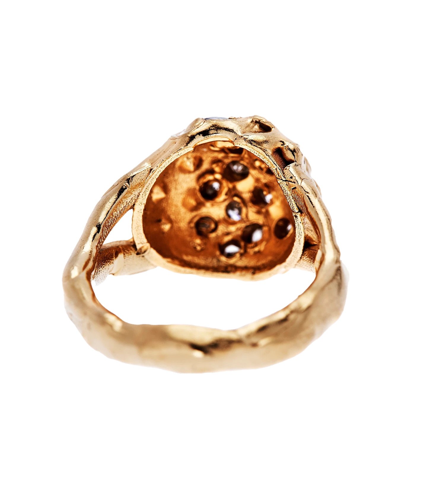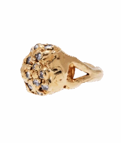 The Diamond Dome Ring is handcrafted from 9kt solid gold with 24kt gold plating, set with responsibly sourced diamonds in Hatton Garden, London.