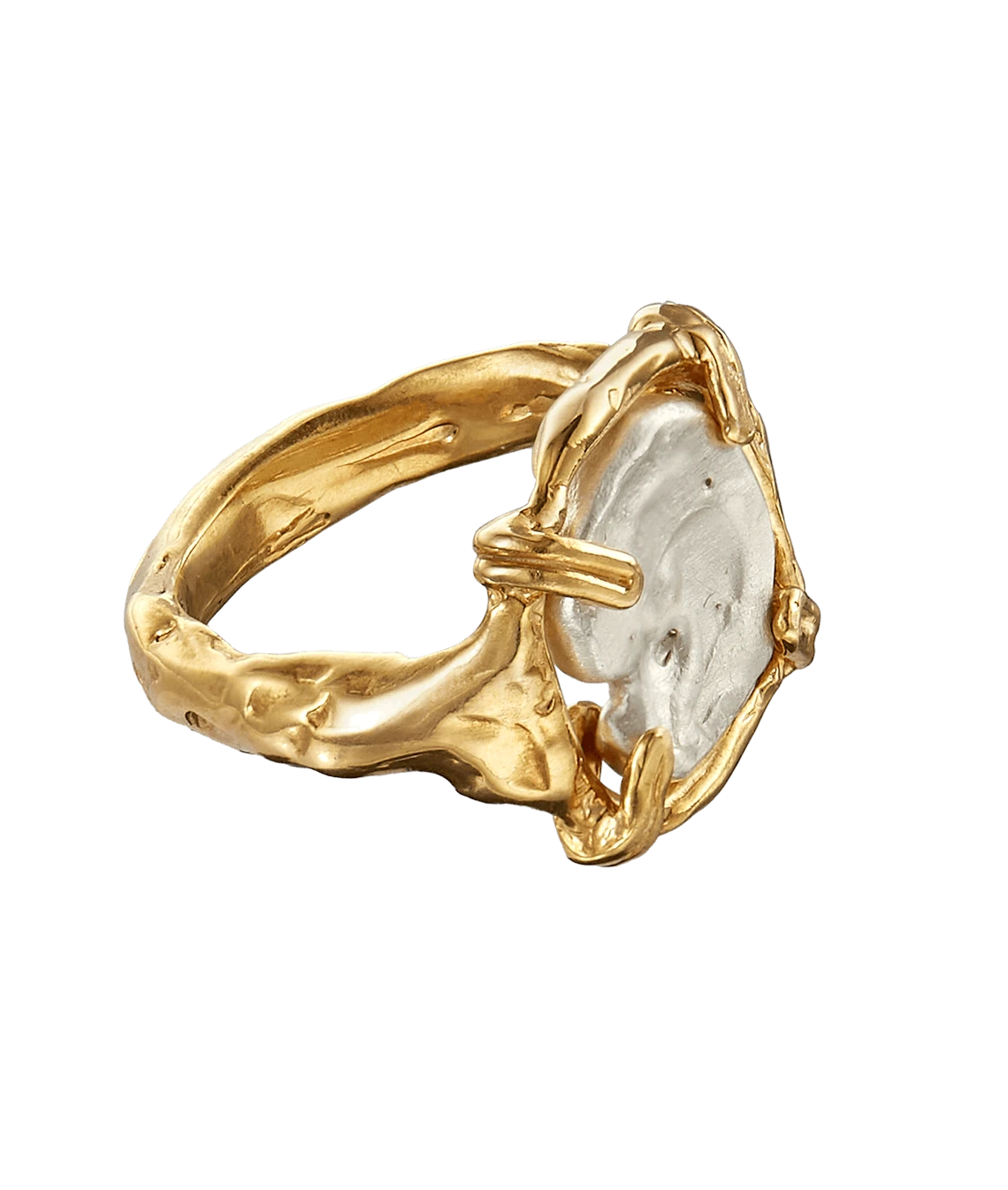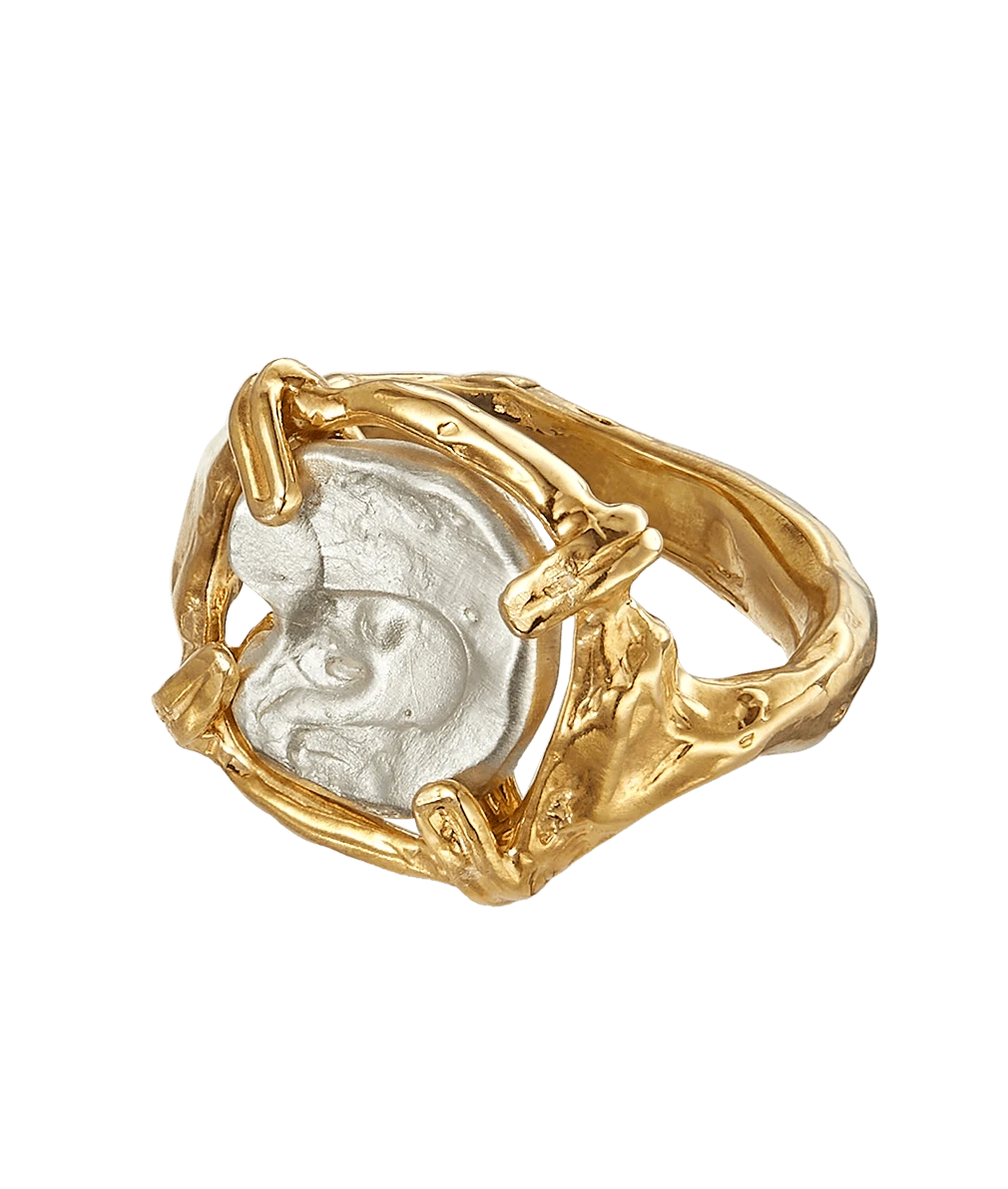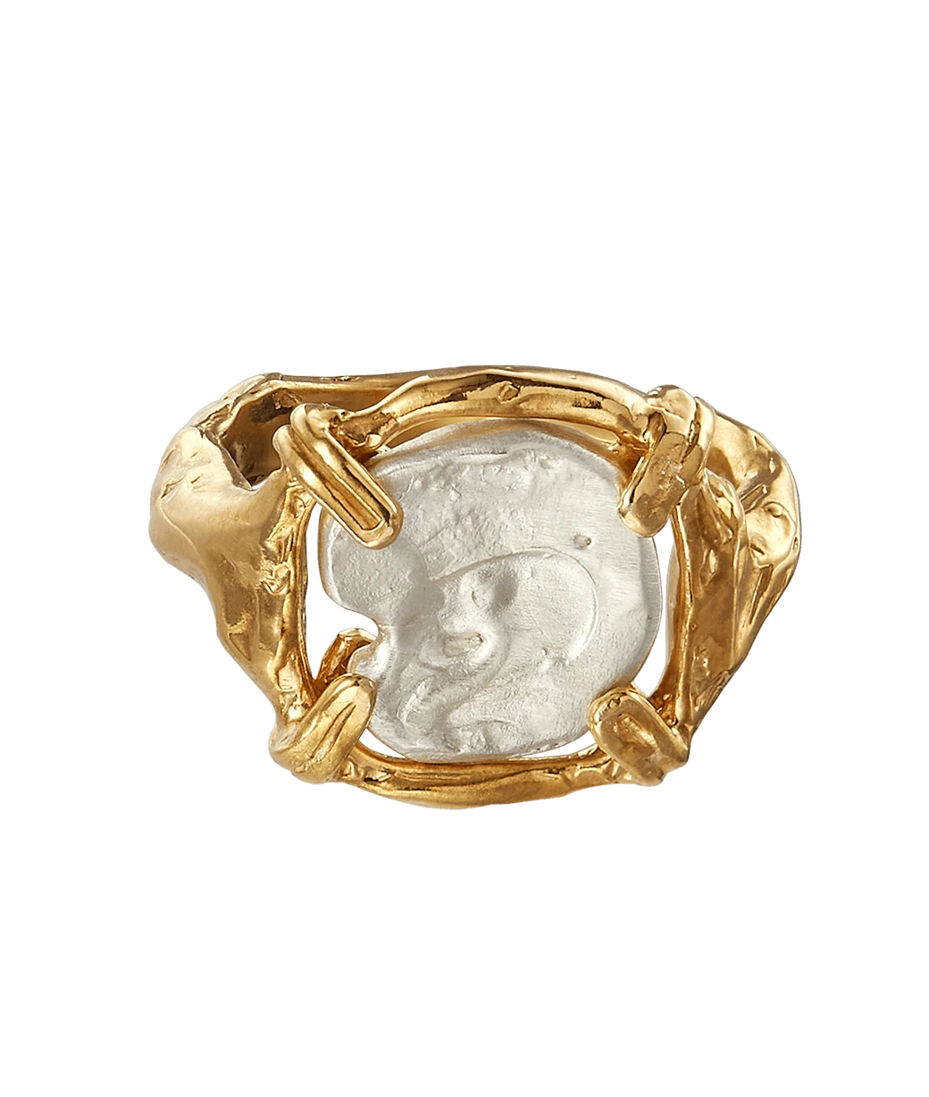 The Gilded Frame Ring frames a sterling silver medallion with molten gold claws. Cast in recycled silver and plated in Alighieri’s signature 24kt gold-plating in the UK, it immortalises a moment in time in a signature new medallion.