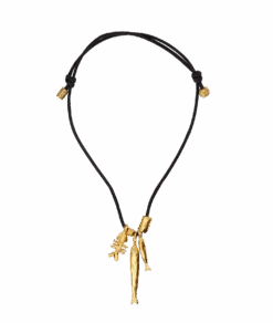The Gone Fishing Choker celebrates the magic of seaside adventures and the summer souvenir. Three molten gold fish are suspended on black Japanese cord; cast in recycled bronze and plated in Alighieri’s signature 24kt gold-plating in the UK. Carry it to bring you all good things on your adventures.Â