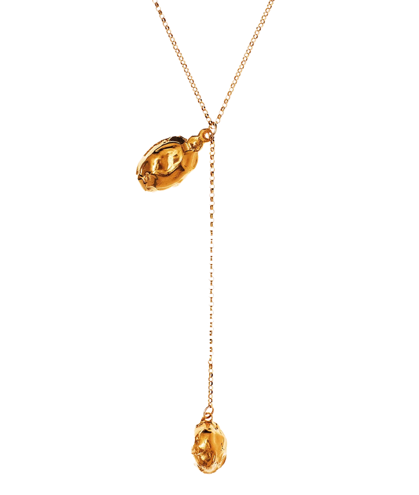 The Lunar Rocks Necklace is handcrafted from 24kt gold plated bronze in Hatton Garden, London.