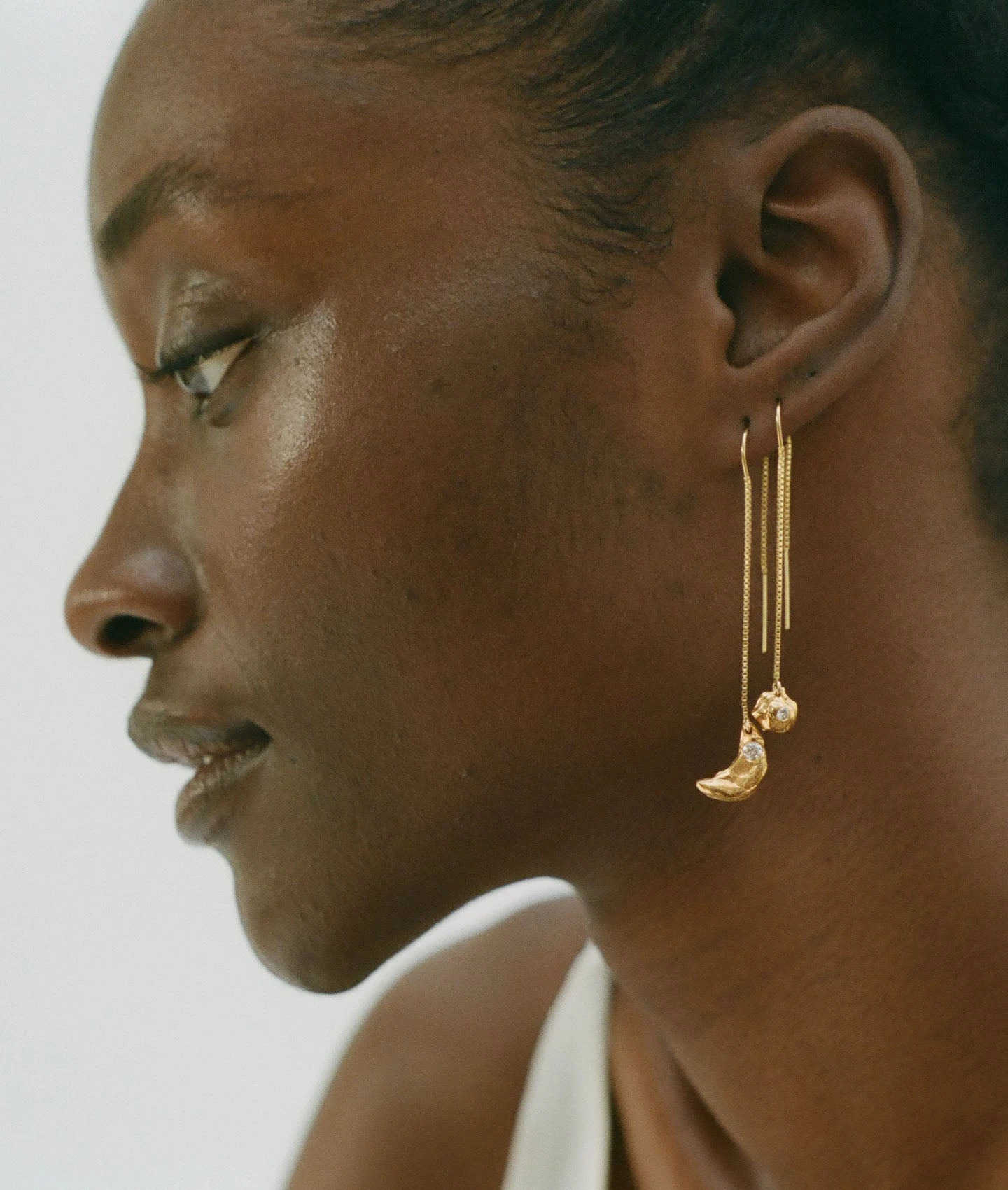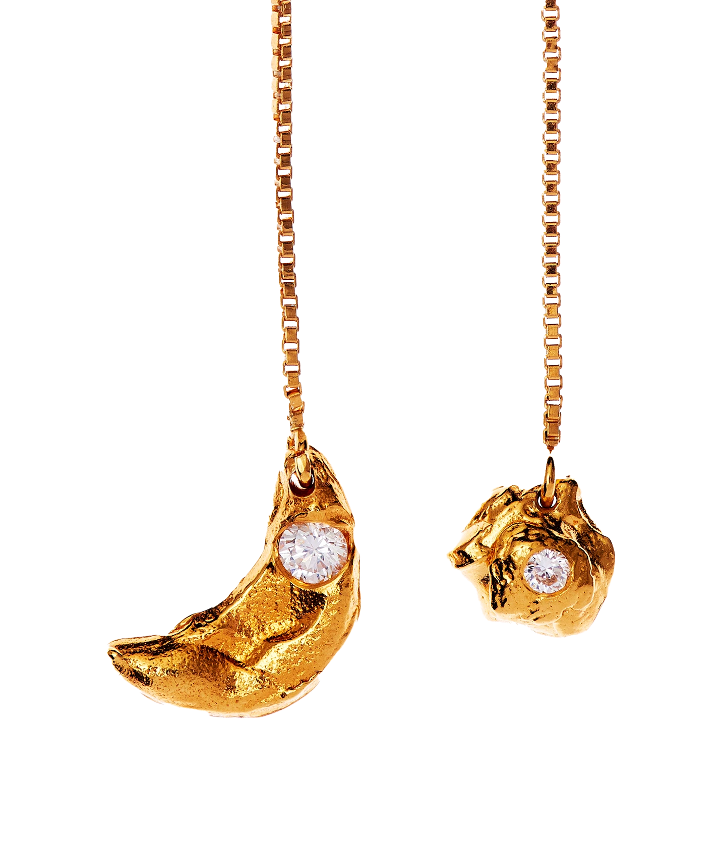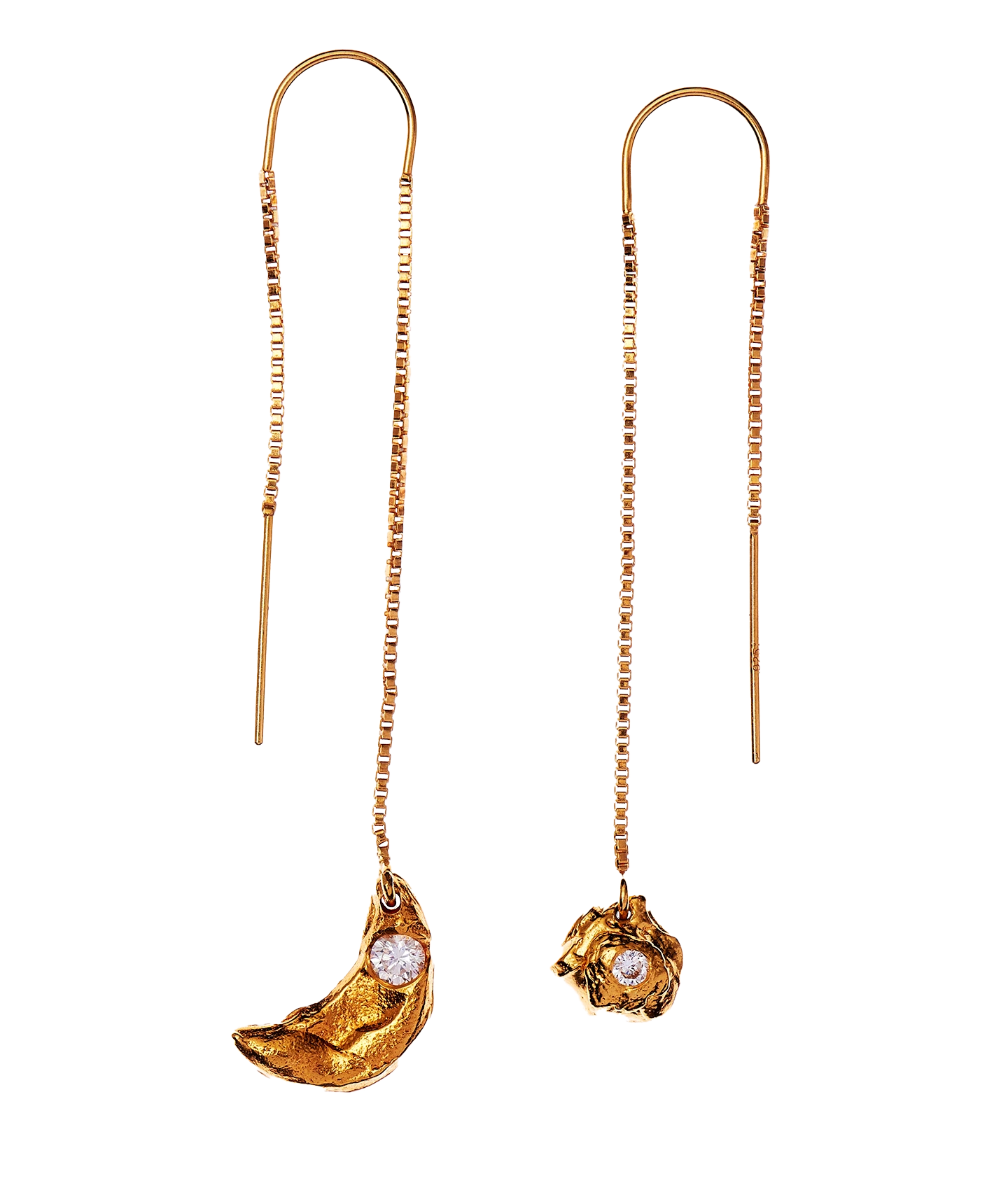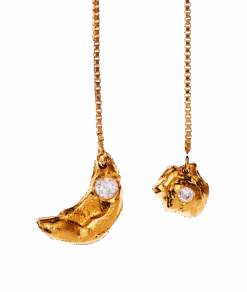 The Moonlight and the Sun Earrings are handcrafted from 24kt plated 9kt gold and set with a diamond in Hatton Garden, London.