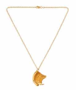The Old Time’s Sake Necklace is handcrafted from 24kt gold plated bronze, in Hatton Garden, London.