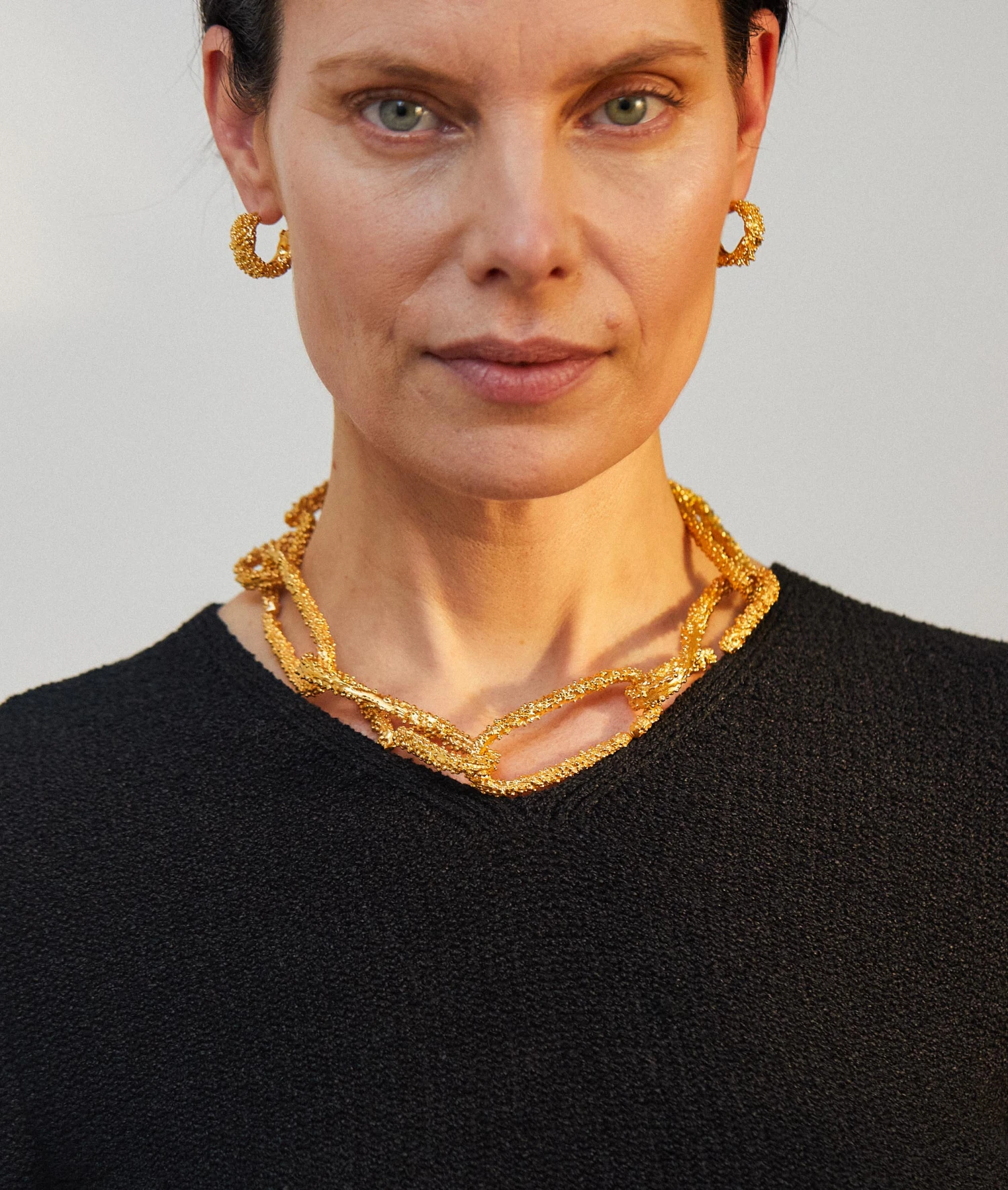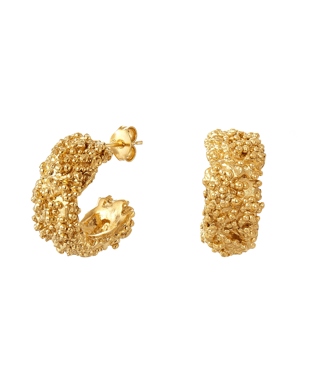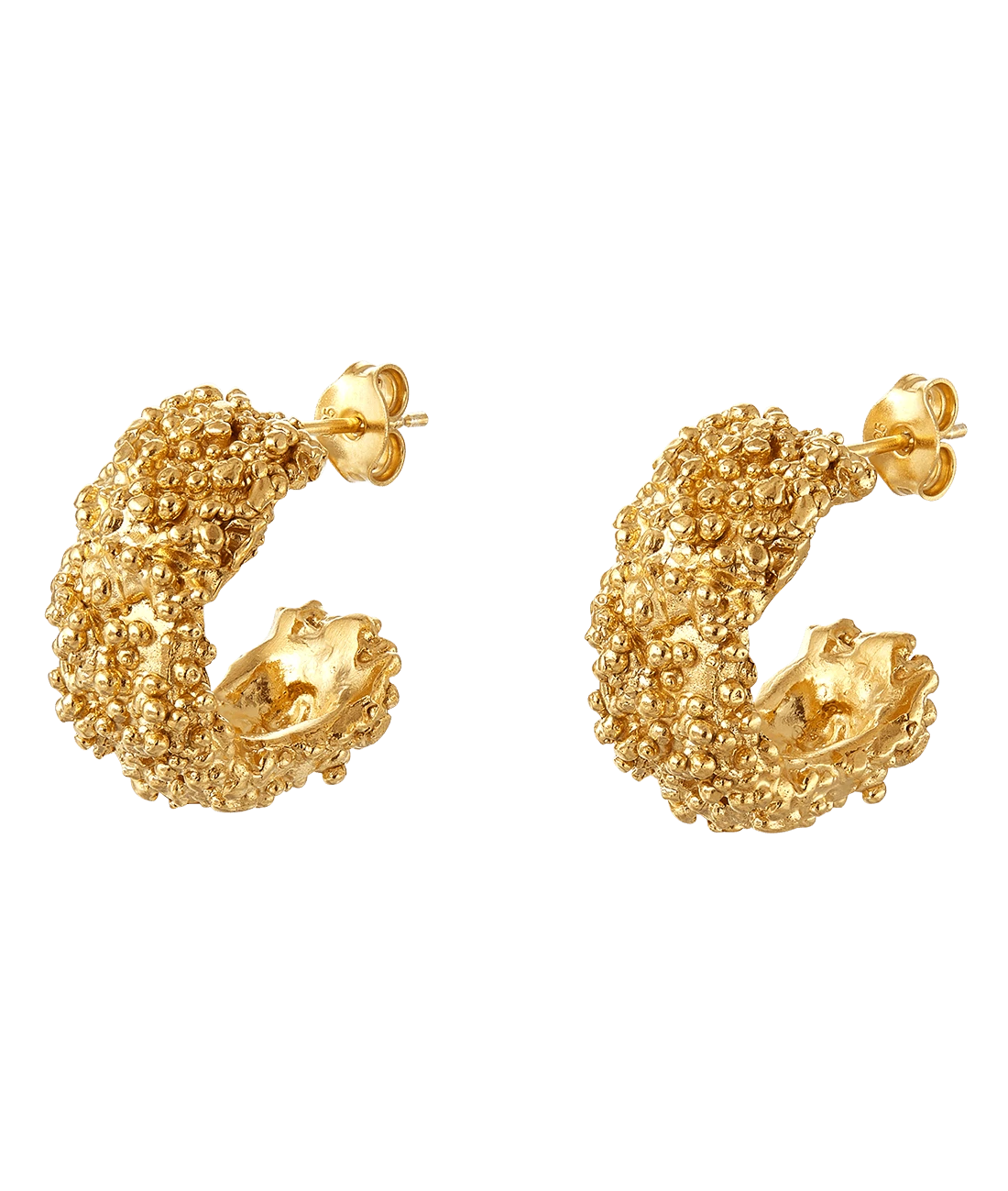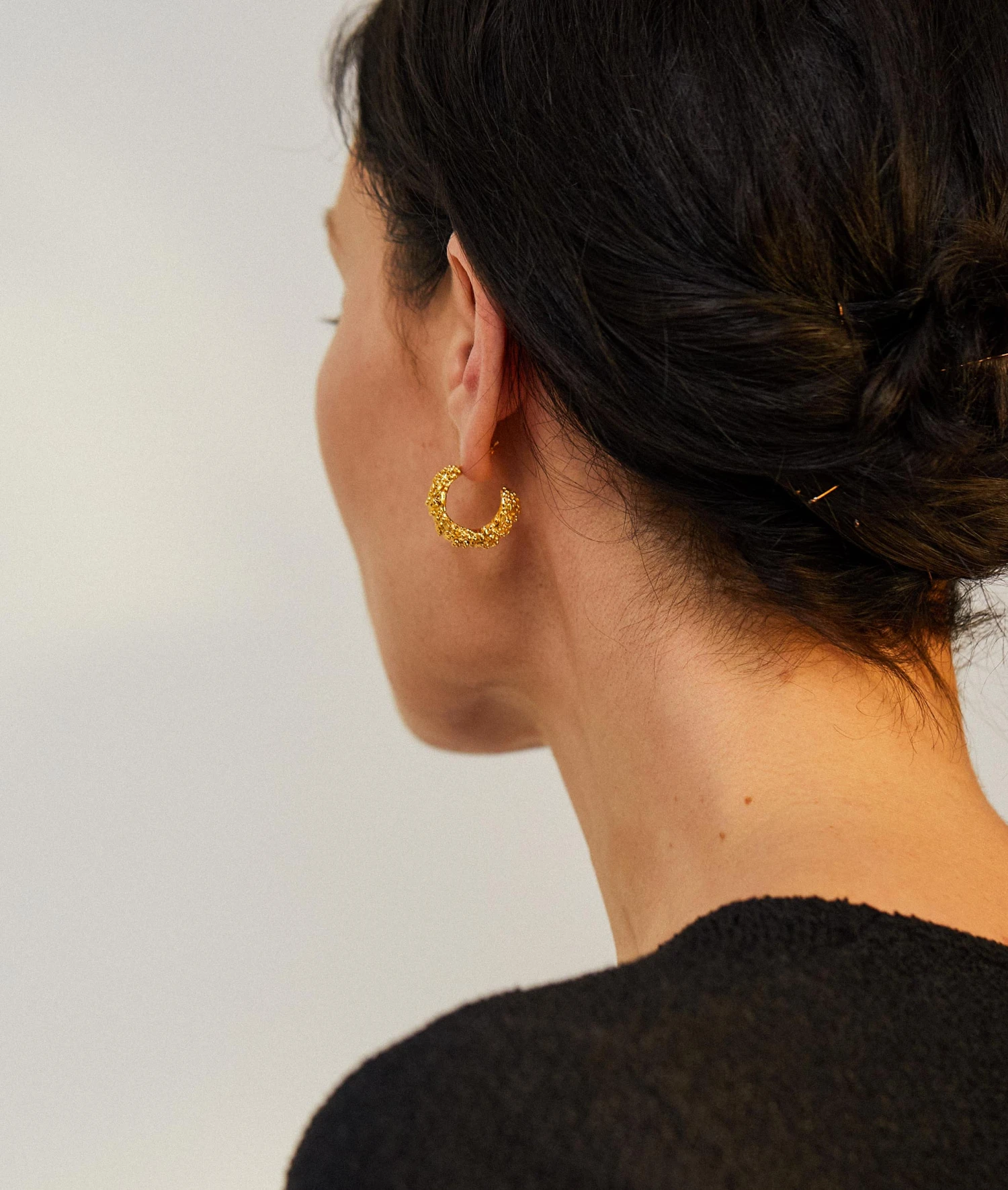 The Rocky Road Hoops are cast in recycled bronze, and plated in Alighieri’s signature 24kt gold-plating. Hand-crafted in the UK, our signature rocky texture is a symbol of overcoming life’s sometimes rocky path.Â