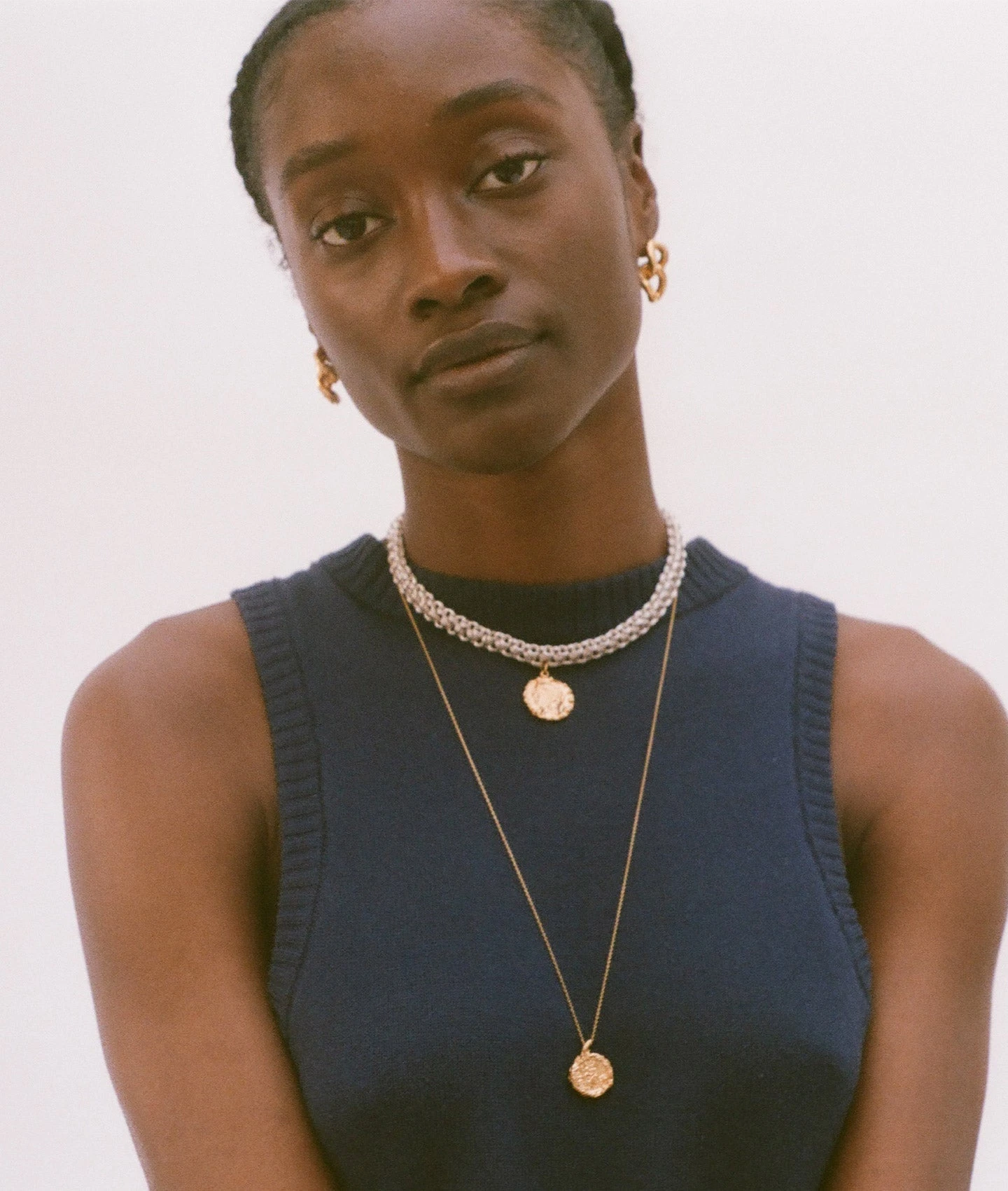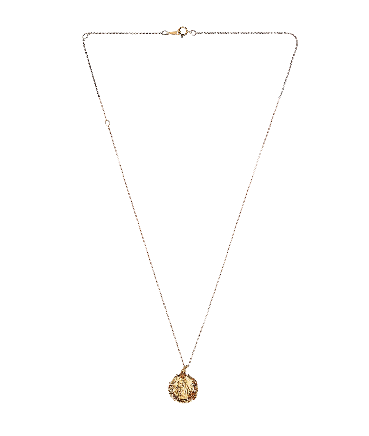 The St. Christopher’s Necklace is handcrafted from 24kt gold plated bronze in Hatton Garden, London.