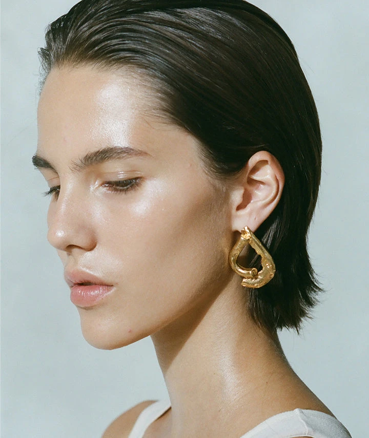 The Warrior Earrings are handcrafted from 24kt gold plated bronze in Hatton Garden, London.