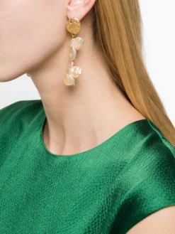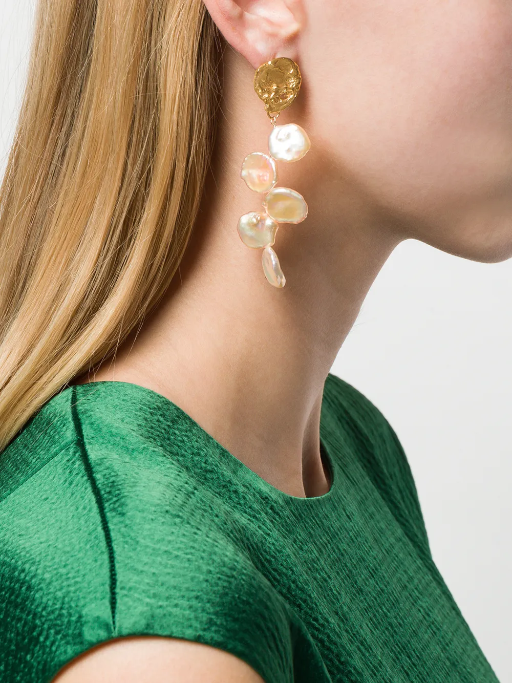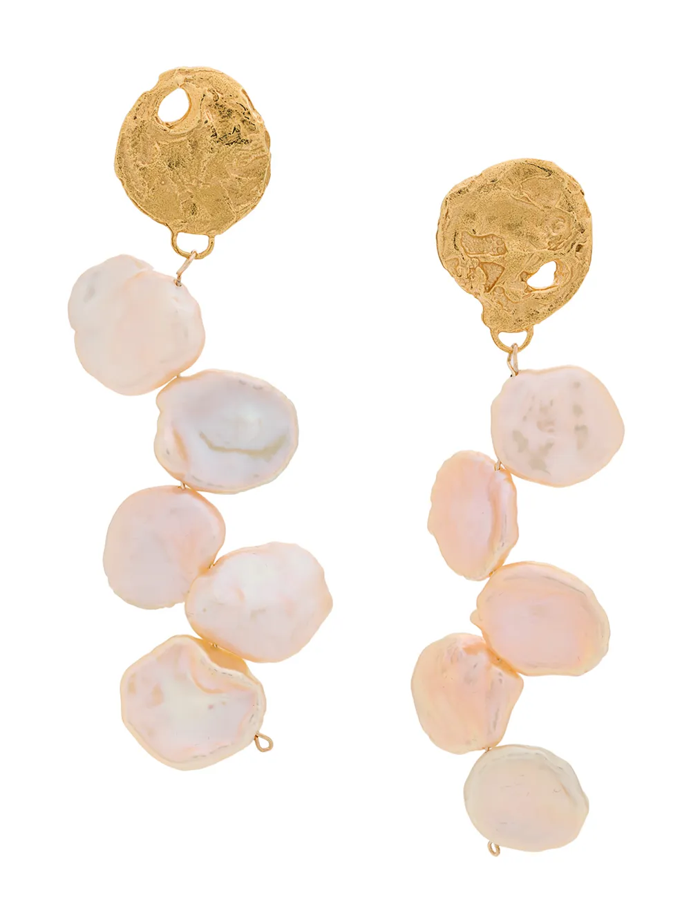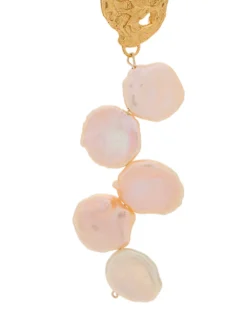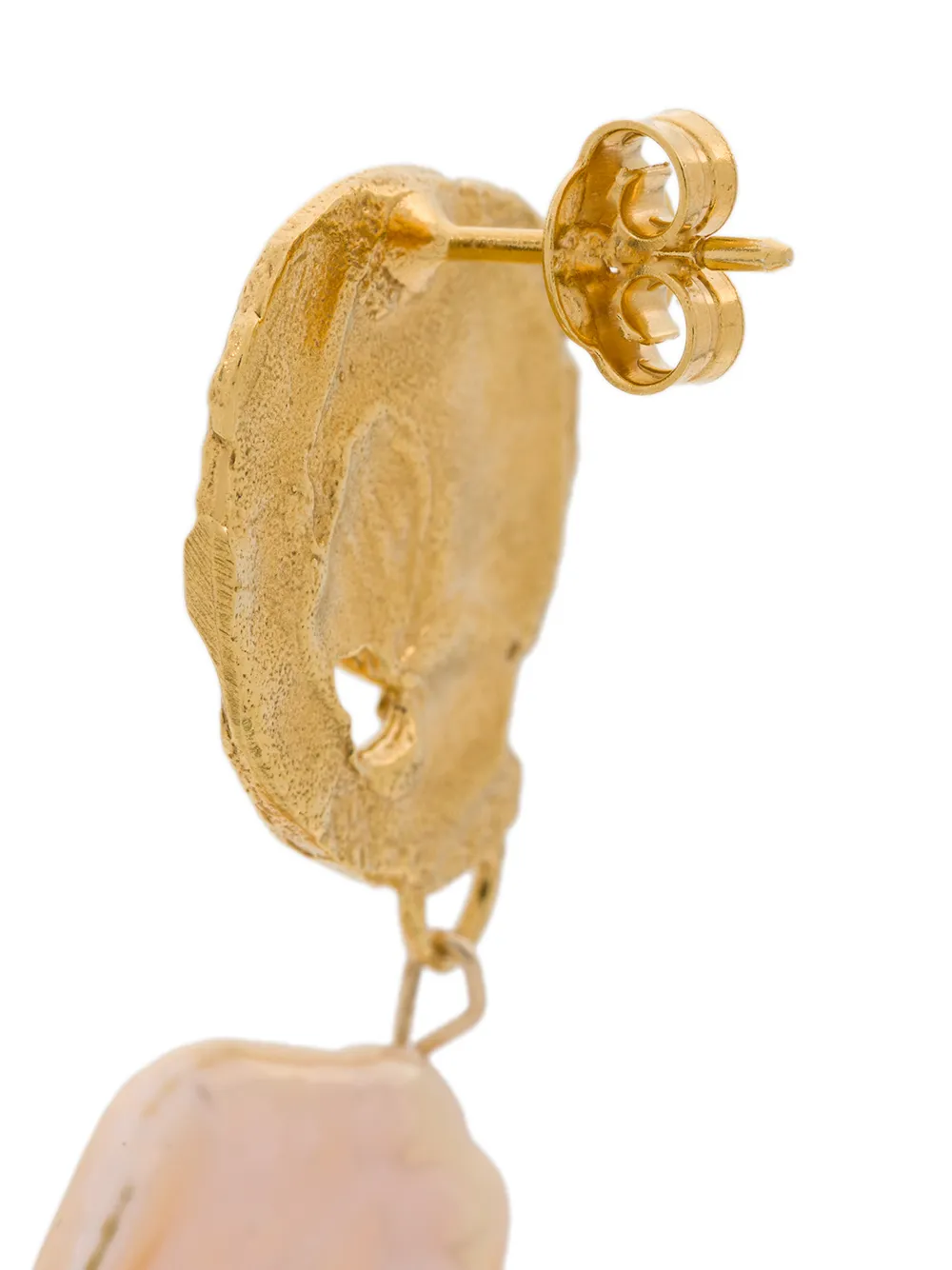 Gold-tone 24kt gold-plated bronze and pearls La Jetee Pearl earrings from Alighieri featuring a post back closure and a long length. These earrings come as a pair. POSITIVELY CONSCIOUS: ALIGHIERI scores 4 out 5 by independent ethical brand rating agency Good On You. It uses eco-friendly and recycled materials, manufactures locally to reduce its carbon footprint, traces most of its supply chain and visits suppliers regularly.