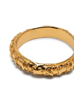 logo-hammered sterling-silver ring from Alighieri featuring gold-tone, sterling silver, hammered-effect finish, all-over embossed logo print and slip-on style. Conscious: We’ve partnered with Good On You – an ethical agency that rates how sustainably brands perform. This item comes from a brand that performs well in relation to their impact on the planet..