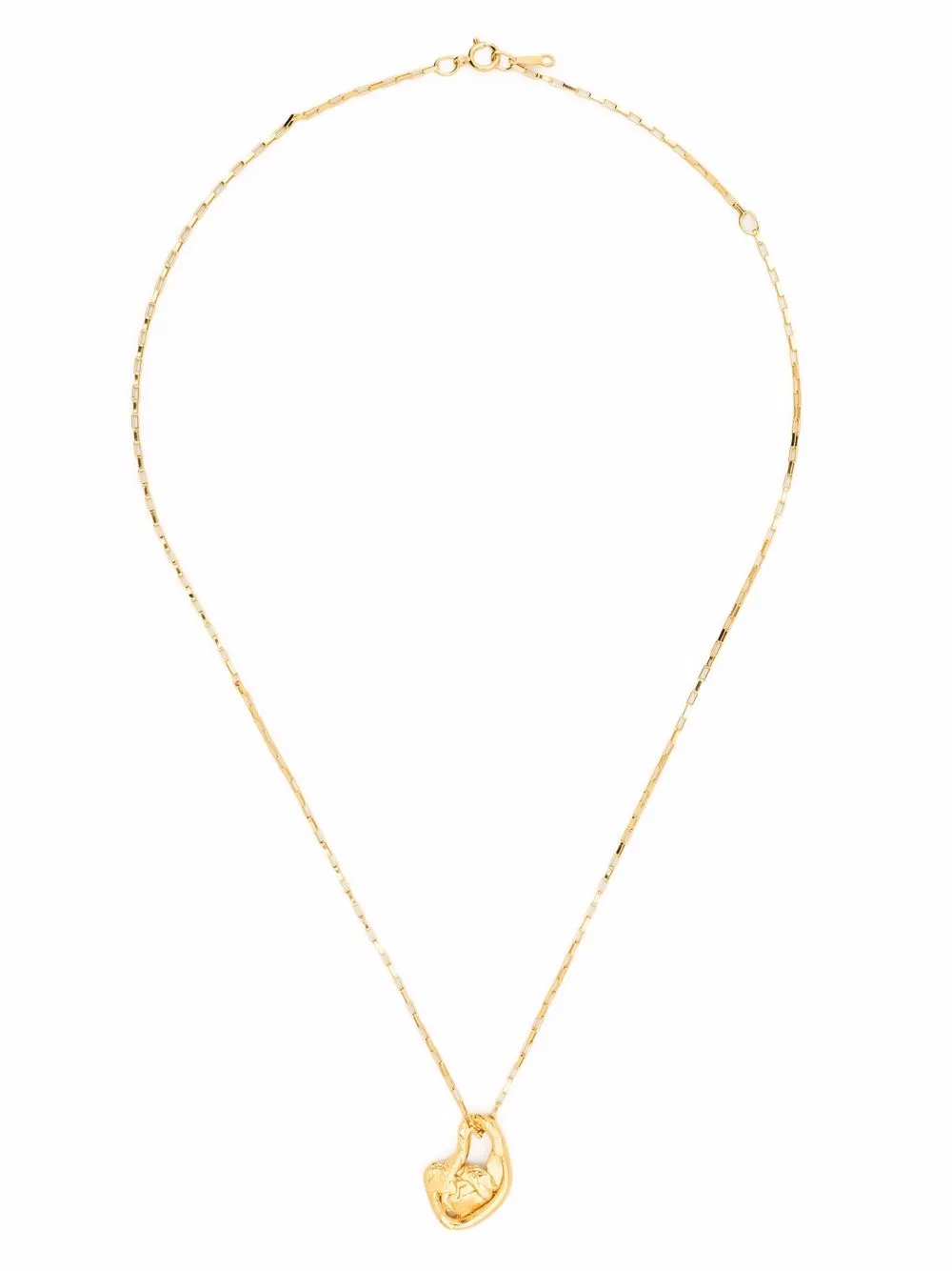 Inspired by literature and travel, Alighieri jewellery takes on sculptural shapes and textured finishes. Showcased on this necklace pendant, purposefully ‘imperfect’ detailing is set in gold-tone hardware to add to this opulent yet organic approach.