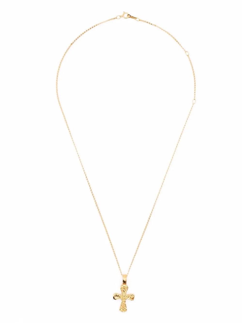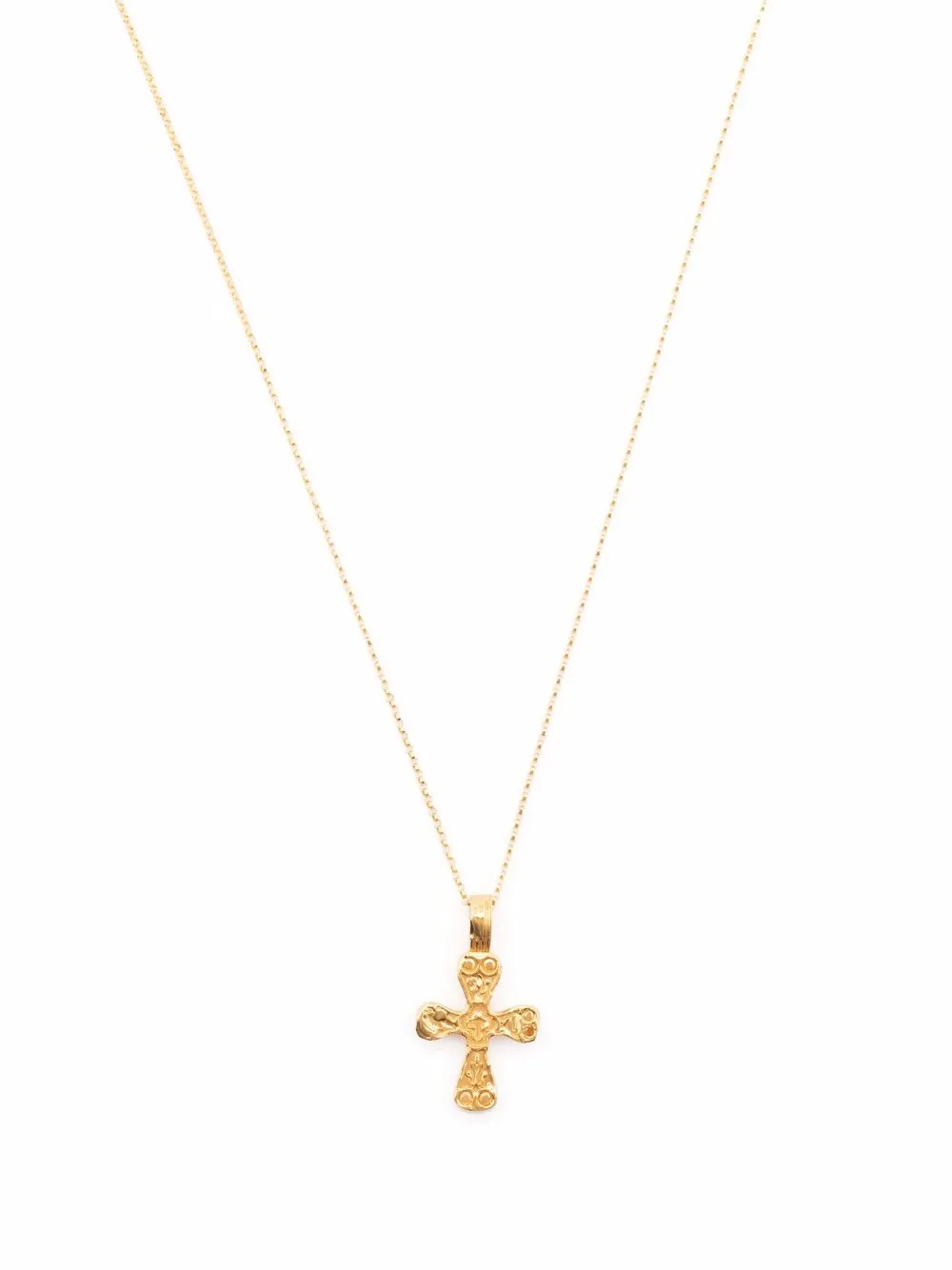 The Dagger of the Night amulet is part of Alighieri’s SS22 collection. This delicate necklace is crafted from 24kt gold-plated bronze and features ornate textures and engraved details on its pendant while a Rolo chain completes its design.