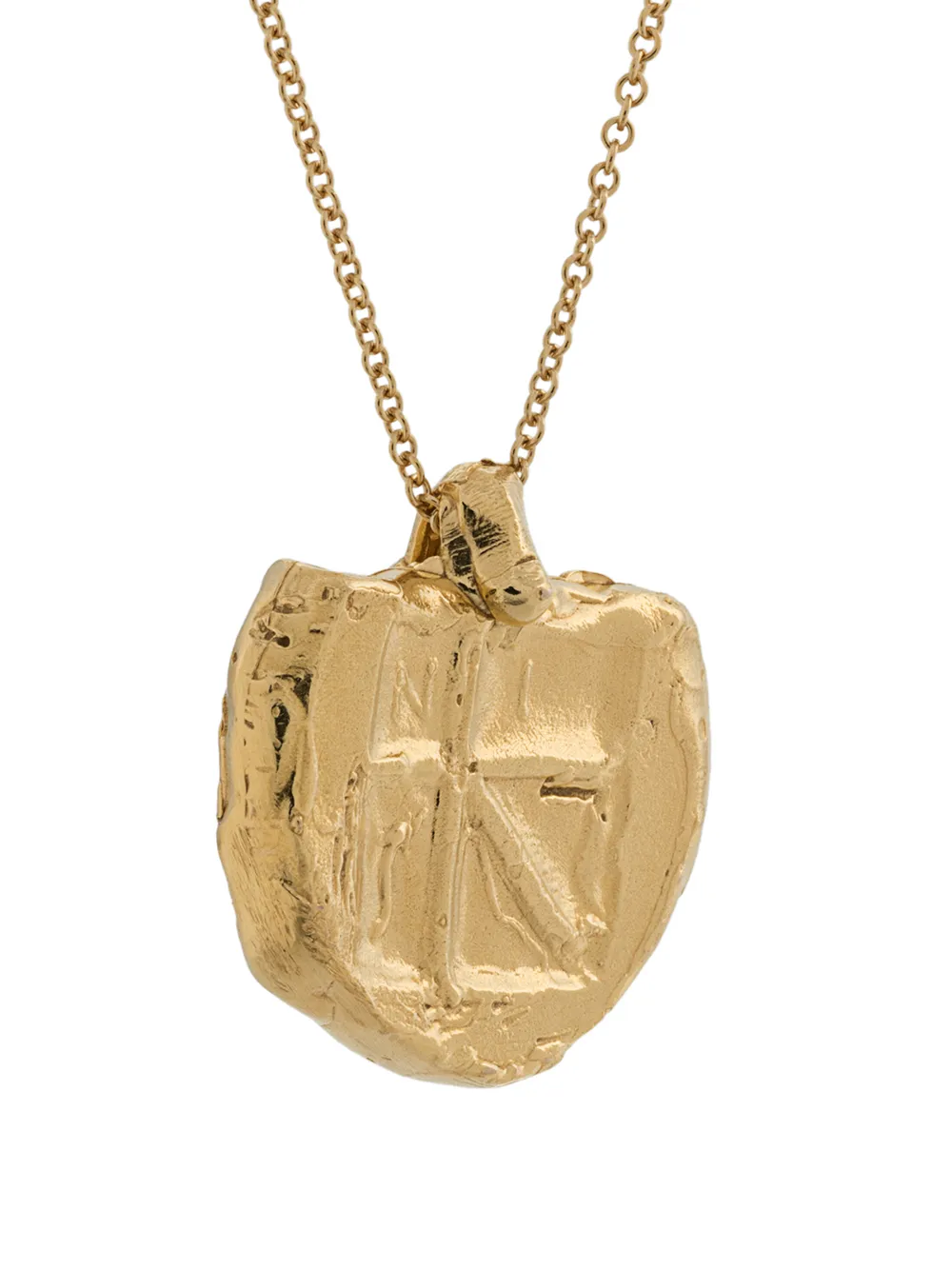 This exquisite piece by Alighieri is inspired by the poet, Dante Alighieri’s ‘Divine Comedy’ selection of poems. From Alighieri’s ‘The Land of the Lawless’ collection, this 24kt gold plated bronze, The Deceptive North Star necklace from Alighieri features a delicate chain with a spring-ring fastening and a light-hearted emblem of guiding lights, that intentionally guide us the wrong way. The North-arrow on the heirloom points inwards, to confuse the traveller. POSITIVELY CONSCIOUS: ALIGHIERI scores 4 out 5 by independent ethical brand rating agency Good On You. It uses eco-friendly and recycled materials, manufactures locally to reduce its carbon footprint, traces most of its supply chain and visits suppliers regularly.