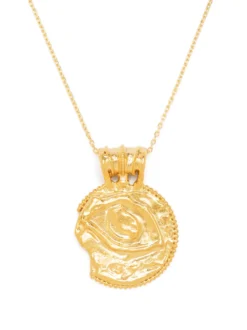 Handcrafted in the United Kingdom, The Illuminated Eye necklace from Alighieri stands out with an eye-engraved medallion. Constructed from a 24kt gold-plated bronze, the motif is a reflection of light and guidance.