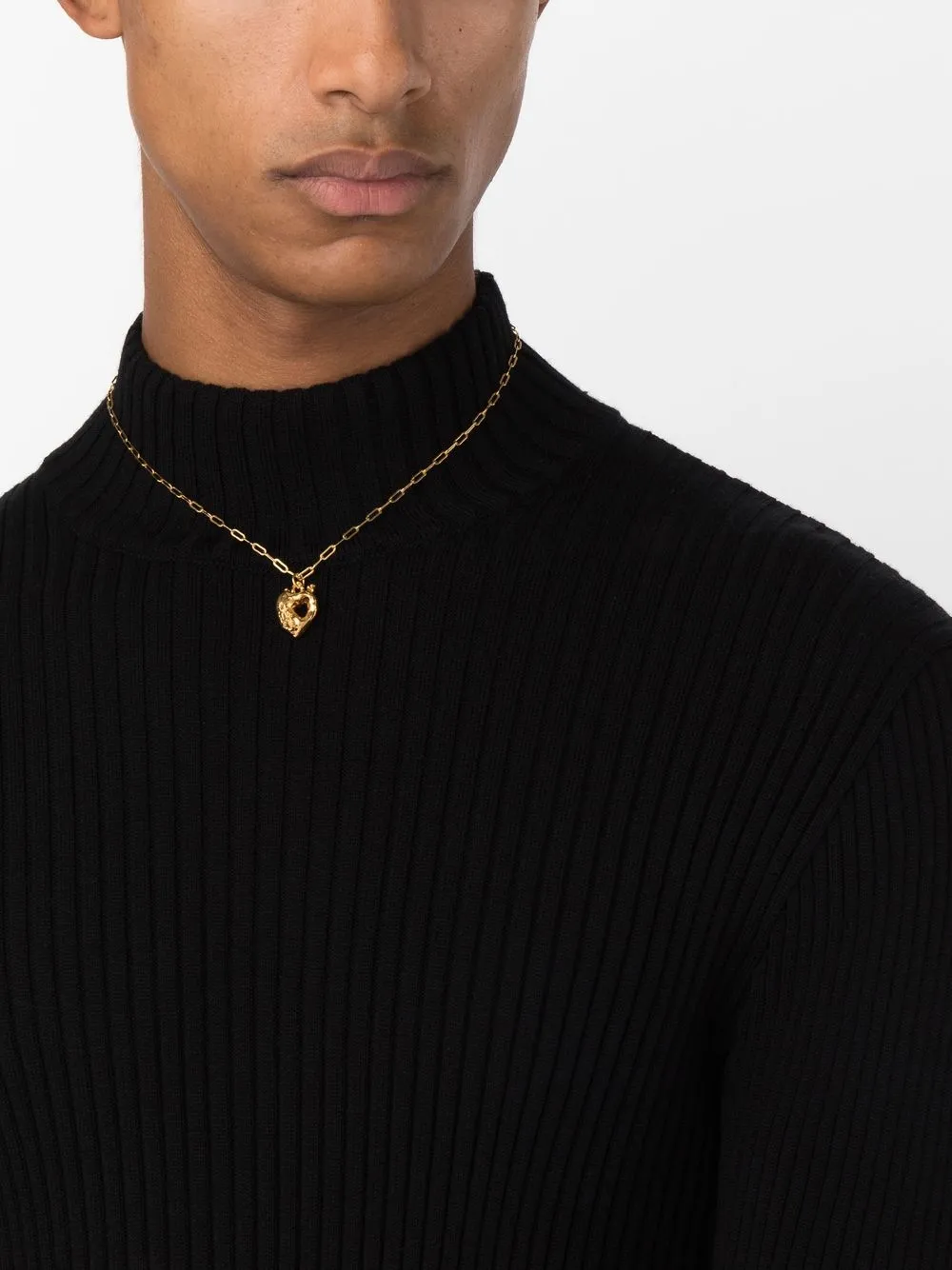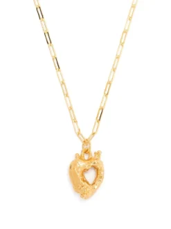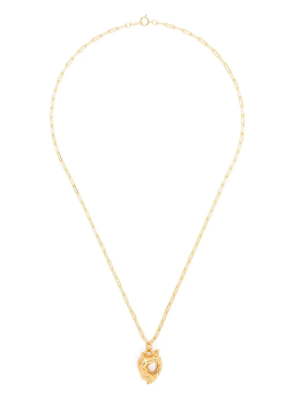 The Lovers Pact necklace from Alighieri featuring heart pendant, chain-link detailing, clasp fastening and gold plated bronze. Conscious: We’ve partnered with Good On You – an ethical agency that rates how sustainably brands perform. This item comes from a brand that performs well in relation to their impact on the planet..