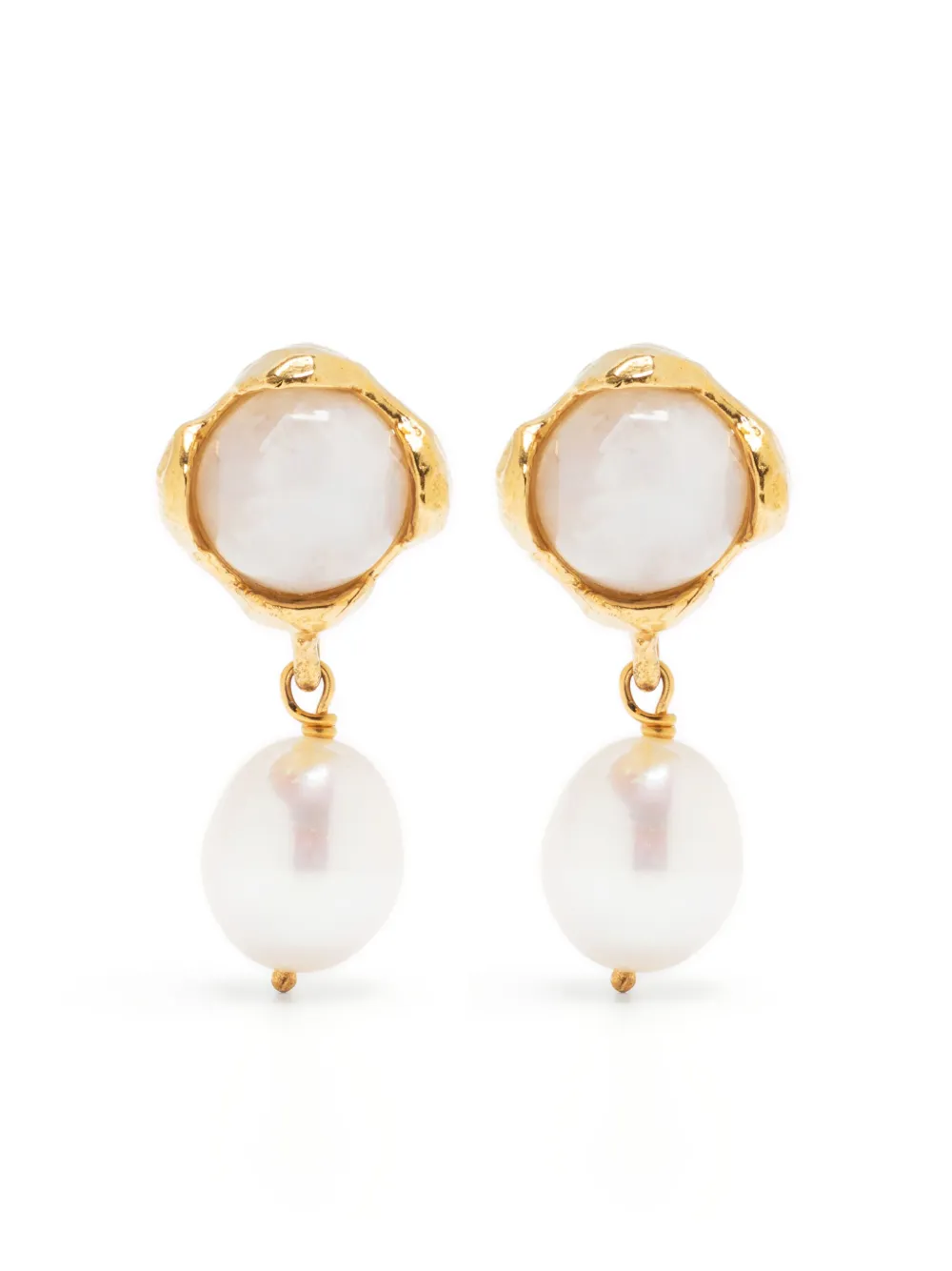 Plated in Alighieri’s signature 24kt gold-plating in the UK, these The Moonlight Capture drop earrings showcase the brand’s timeless aesthetic. The pair is embellished with Moonstones and freshwater pearls, and each one is completely unique.Â