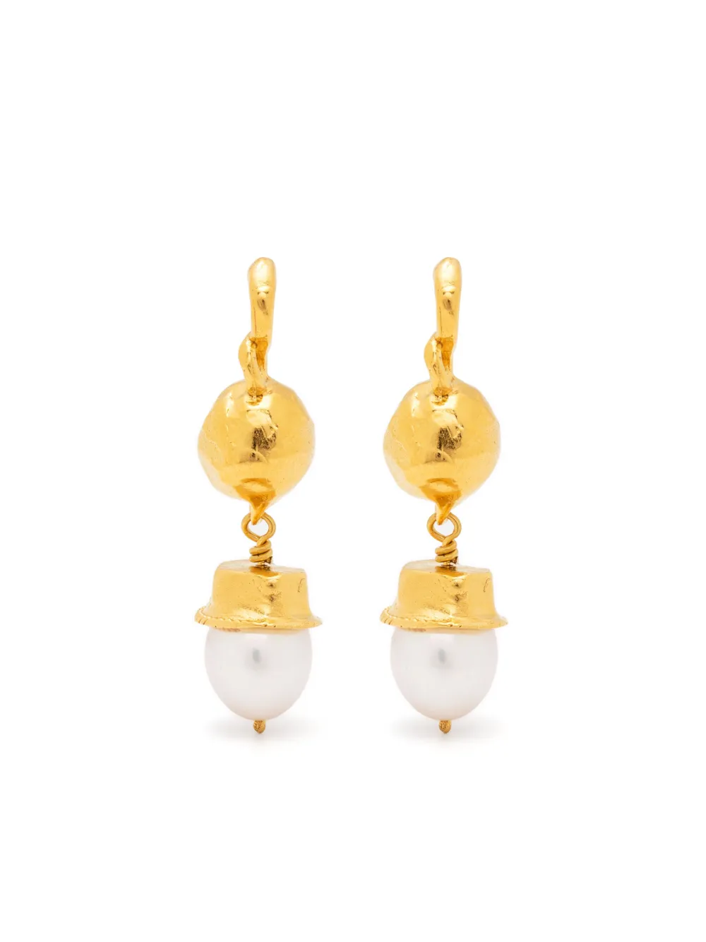 Handcrafted with rich 24kt yellow gold plating, these delicate The Return to Innocence earrings from Alighieri are complete with dainty pearl detailing.