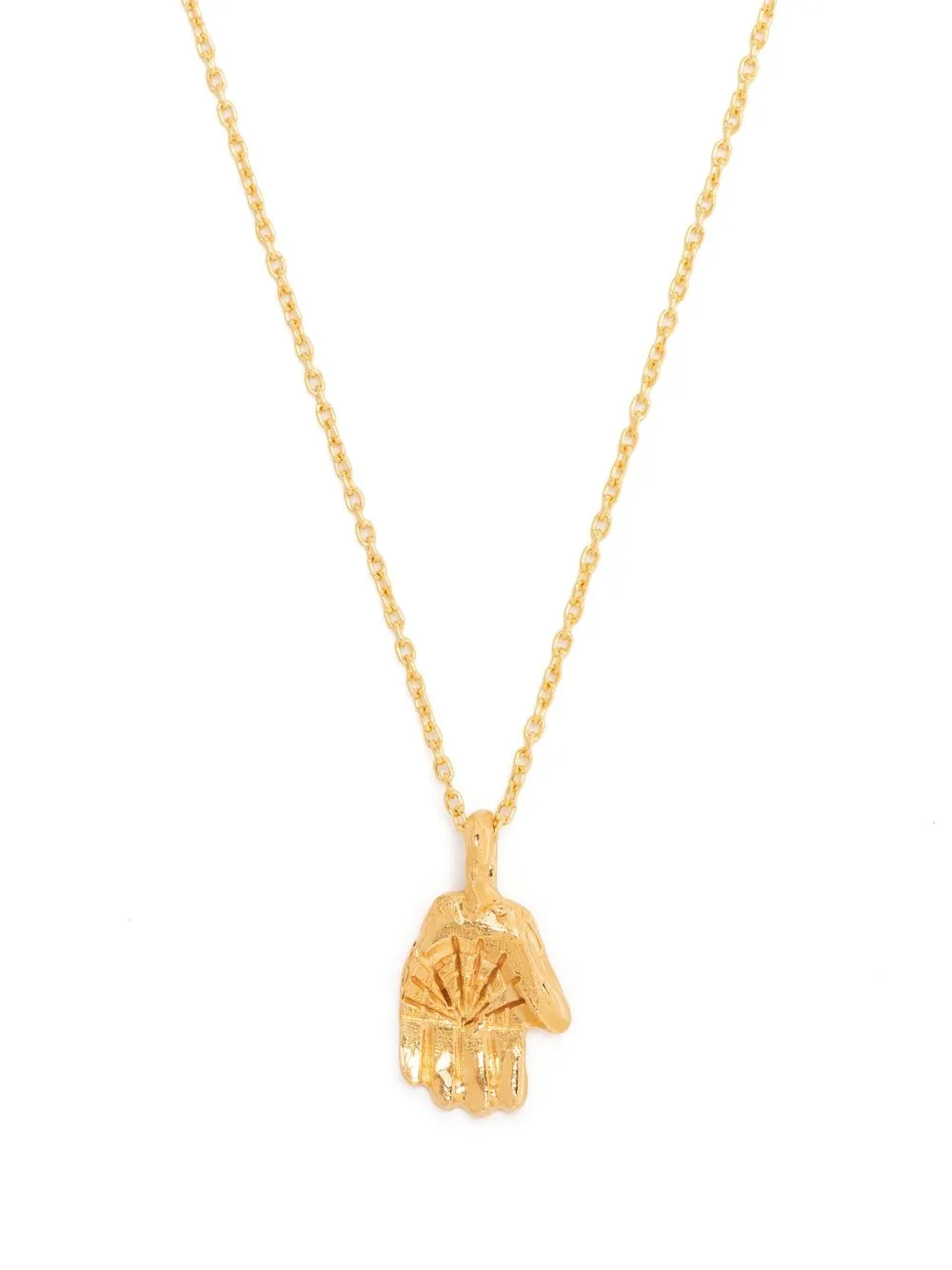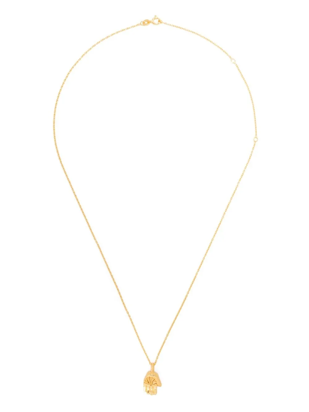 The Secret of Time Amulet necklace from Alighieri featuring chain-link detailing, clasp fastening, gold plated bronze and hand charm. Conscious: We’ve partnered with Good On You – an ethical agency that rates how sustainably brands perform. This item comes from a brand that performs well in relation to their impact on people, which ensures good working conditions in the supply chain..
