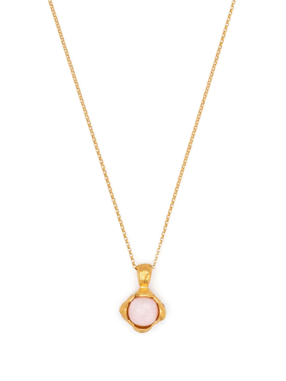 Handcrafted in the United Kingdom, Alighieri’s The Tramonto necklace boasts a clairvoyant opal pendant that takes the central focus of this gold-plated necklace.